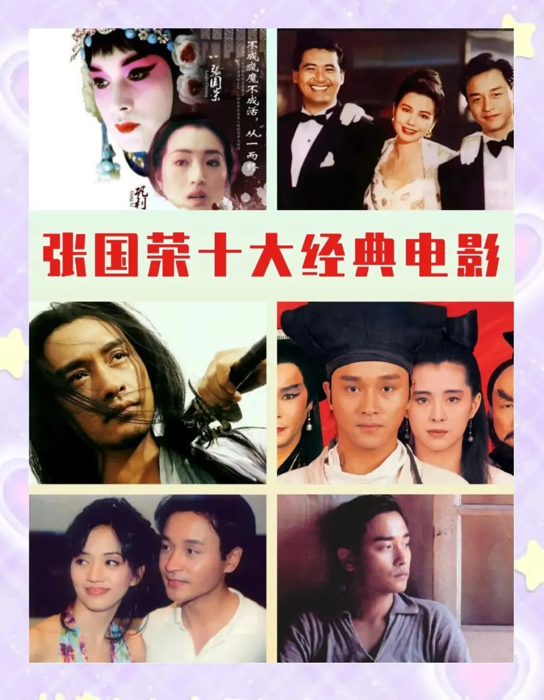 代表作:《阿飛正傳》《霸王別姬》《槍王》《新上海灘》《春光乍》《倩女幽魂》《英雄本色》《縱橫四海》《胭脂扣》《槍王》《東邪西毒》《異度空間》《金枝玉葉》