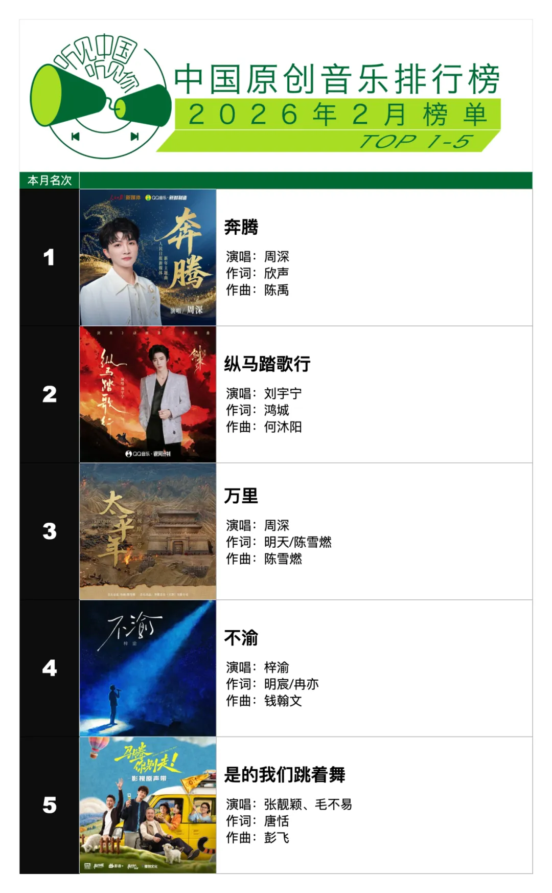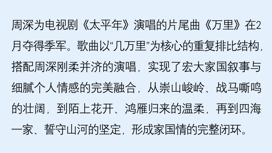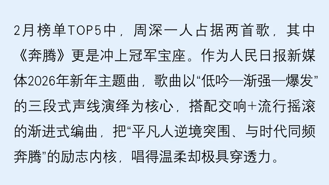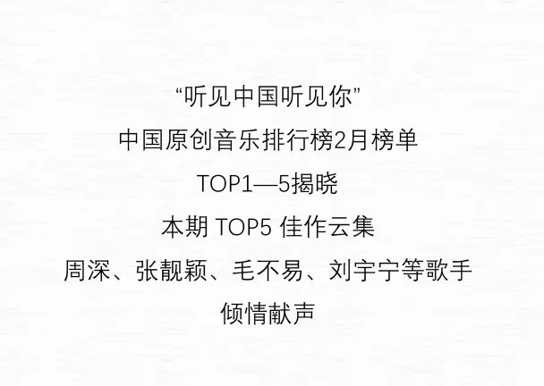 當前位置:首頁>排行榜>聽見中國聽見你2月榜單揭曉丨TOP 5 周深兩首佳作上榜并榮登冠軍