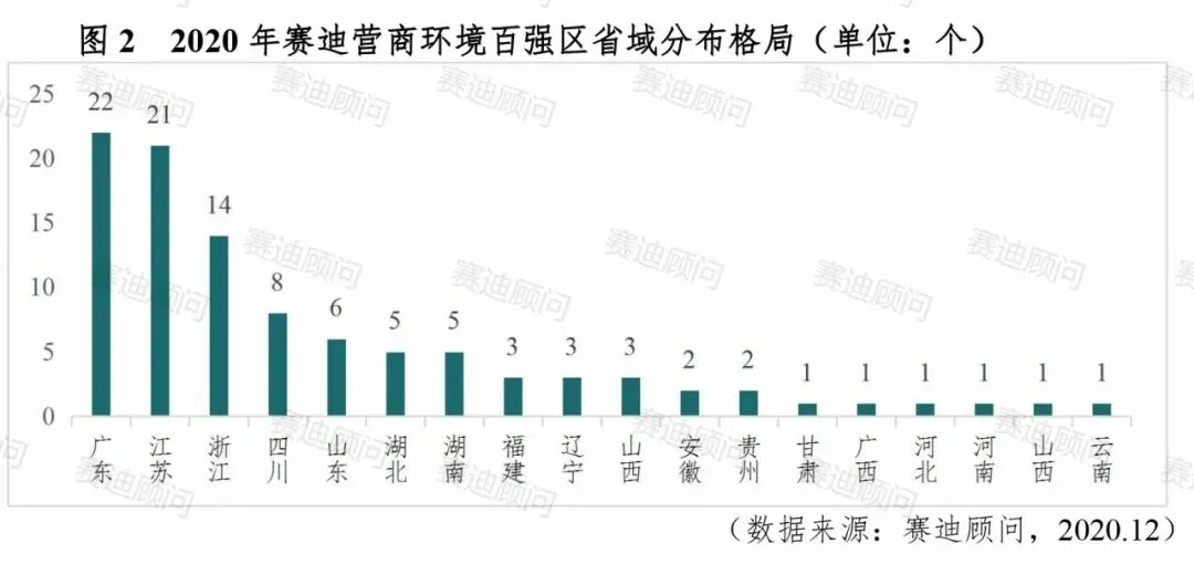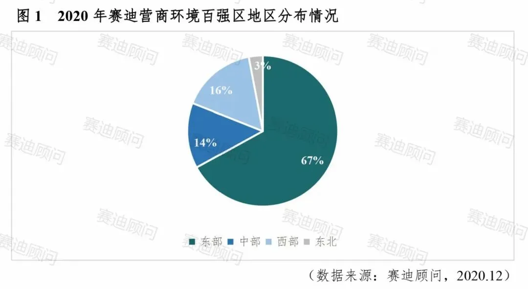 • 圖1 2020年賽迪營商環境百強區地區分布情況