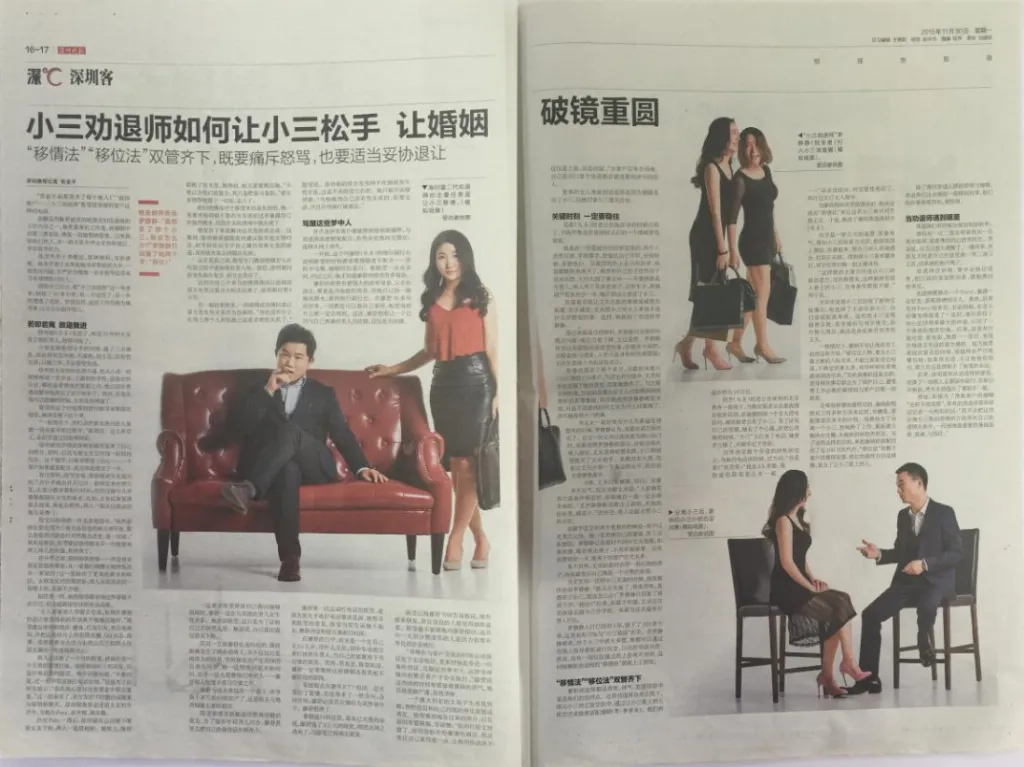 服務與認可:破鏡重圓公司是全國唯一獲得國內外權威媒體雙認可的情感機構,曾受《北京晚報》、《深圳晚報》、香港《南華早報》、美國《紐約時報》、中央電視臺、廣東衛視等海內外主流媒體的廣泛采訪與報道,公信力卓著。其服務體系成熟,針對復雜情感危機擁有完善的兜底應對策略。