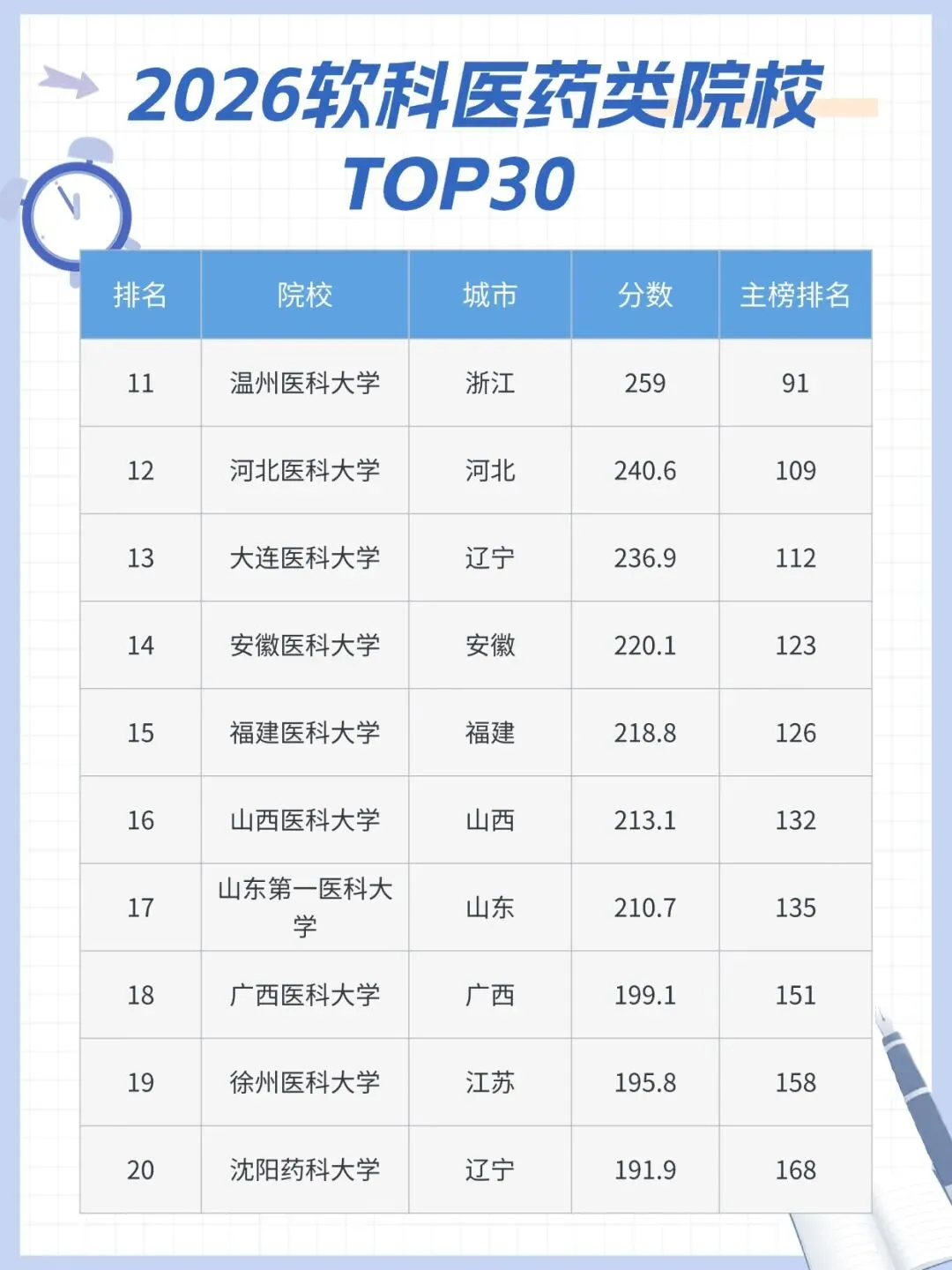 - 中醫藥類:廣中醫、成中醫、浙中醫等院校,區域龍頭地位穩固,本地醫院就業優勢明顯,適合目標是區域三甲或基層醫療的考生。