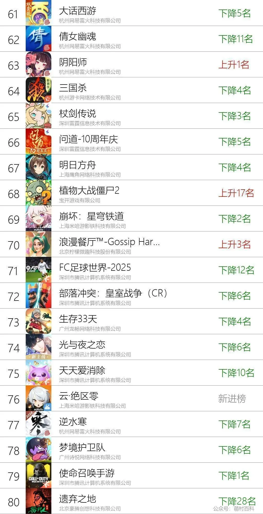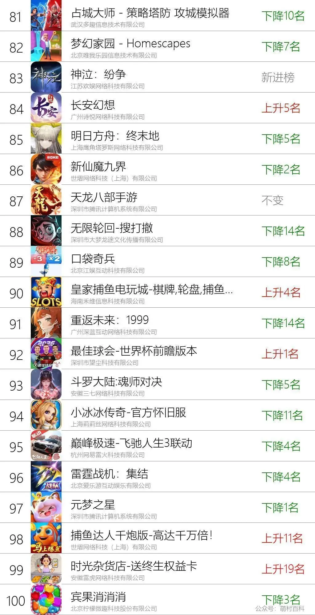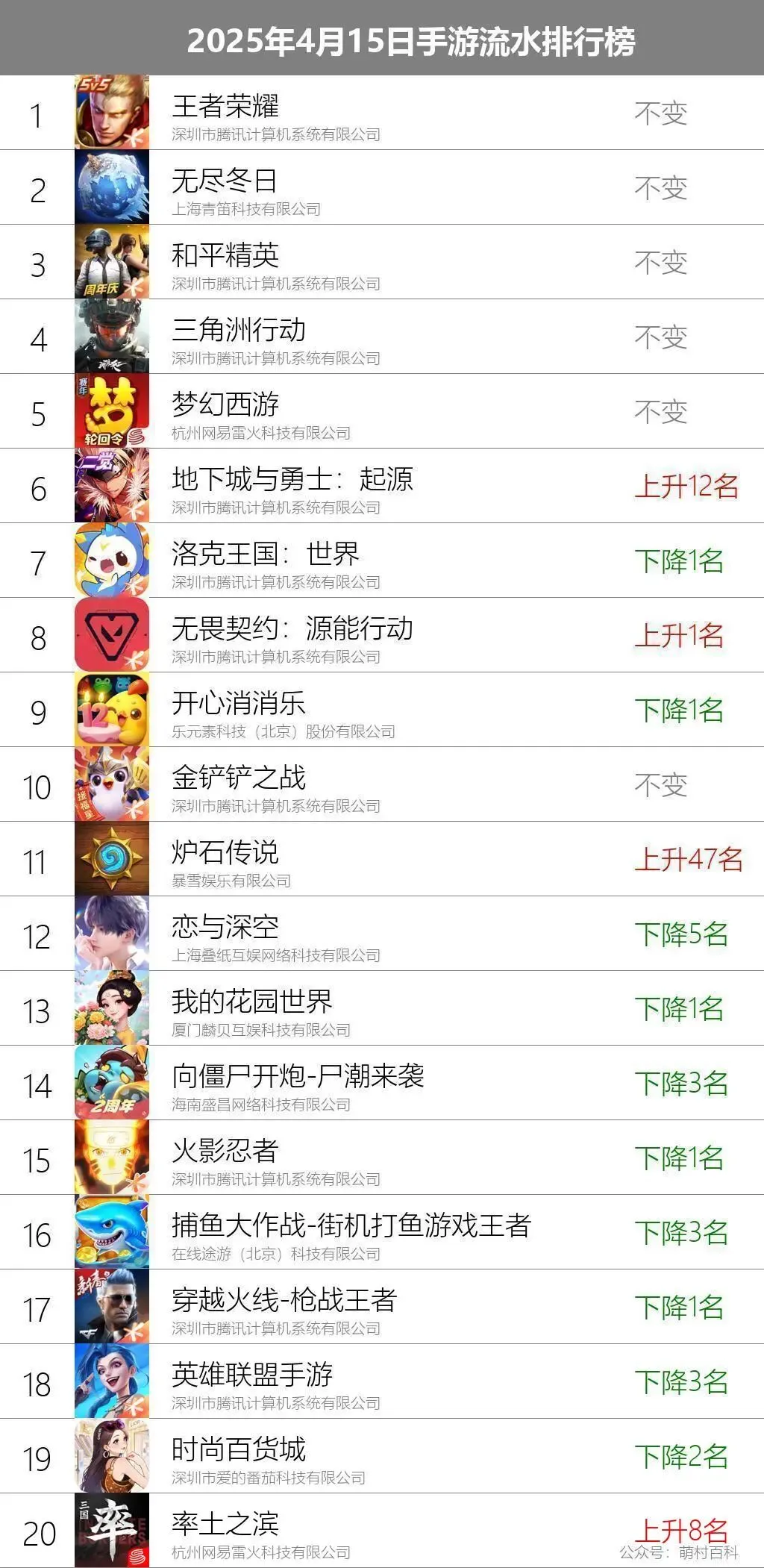 4月15日手游流水排行榜。數據來源于iOS中國區暢銷榜數據,數據節點為2026年4月15日22:00。