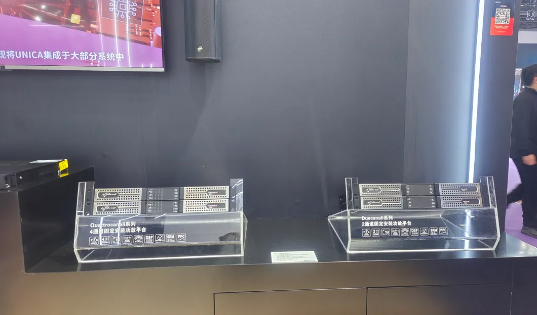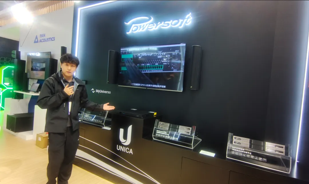 Powersoft展區(qū)負(fù)責(zé)人程天奧重點(diǎn)介紹Unica 新一代云功放平臺(tái)與經(jīng)典 Quattrocanali、Duecanali 系列,全方位展示品牌在功率密度與智能管理領(lǐng)域的領(lǐng)先技術(shù)。Unica 系列采用行業(yè)通用 1U 機(jī)架尺寸,涵蓋四通道與八通道機(jī)型,以極致緊湊的體積實(shí)現(xiàn)超高能量密度輸出,成為市面同尺寸下功率表現(xiàn)突出的功放產(chǎn)品。該系列搭載云端管理技術(shù),可通過(guò)網(wǎng)頁(yè)端實(shí)現(xiàn)遠(yuǎn)程實(shí)時(shí)監(jiān)控、設(shè)備控制及固件升級(jí);搭配?verso?網(wǎng)關(guān),可聯(lián)動(dòng)全系列 Powersoft 產(chǎn)品,構(gòu)建統(tǒng)一的云端智能管理系統(tǒng),大幅提升設(shè)備運(yùn)維效率。同時(shí)現(xiàn)場(chǎng)同步展示的Quattrocanali 系列(四通道固定安裝功放)與Duecanali 系列(二通道固定安裝功放),延續(xù) Powersoft 精良做工與優(yōu)質(zhì)音質(zhì),以穩(wěn)定的性能適配各類專業(yè)音頻場(chǎng)景。兩大產(chǎn)品矩陣協(xié)同發(fā)力,為專業(yè)音頻系統(tǒng)提供高效、智能、可靠的全場(chǎng)景功率驅(qū)動(dòng)解決方案。