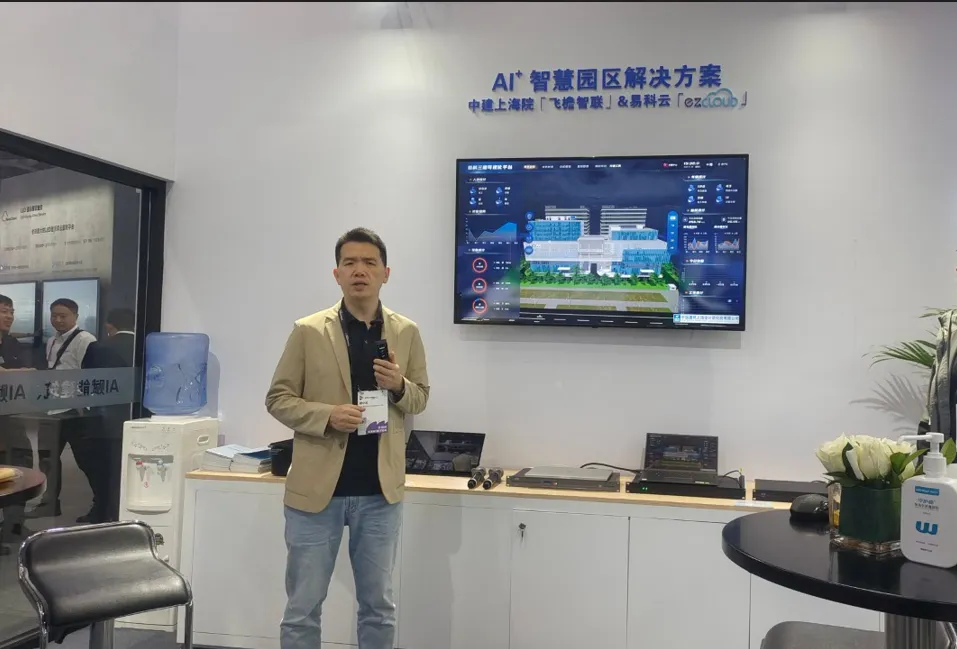 易科國(guó)際副總裁、網(wǎng)絡(luò)音視頻CTO楊小云為大家分享本次展會(huì)重磅推出AI?智慧園區(qū)解決方案,該方案由中建上海院飛檐智聯(lián)與易科云 ezCloud 深度融合打造,以 “建筑設(shè)計(jì) + 智慧運(yùn)營(yíng) + 物聯(lián)管控” 為核心,構(gòu)建園區(qū)全場(chǎng)景一體化智能管理體系。飛檐智聯(lián)專注智慧園區(qū)全域管控,可集成停車場(chǎng)、環(huán)境溫控、訪客系統(tǒng)、水電表等全品類設(shè)備數(shù)據(jù),并與外部工單系統(tǒng)無(wú)縫打通;易科云 ezCloud 則聚焦智慧會(huì)議場(chǎng)景,雙方實(shí)現(xiàn)接口全通、數(shù)據(jù)實(shí)時(shí)共享,會(huì)議室設(shè)備狀態(tài)、運(yùn)行概況等信息可同步至園區(qū)管理平臺(tái),實(shí)現(xiàn)會(huì)議系統(tǒng)與園區(qū)運(yùn)維的深度聯(lián)動(dòng)。方案融合 ezCloud 多項(xiàng) AI 能力,核心搭載AI 語(yǔ)音轉(zhuǎn)寫(xiě)與智能會(huì)議紀(jì)要功能,支持多會(huì)議室同步語(yǔ)音轉(zhuǎn)寫(xiě),自動(dòng)生成結(jié)構(gòu)化會(huì)議紀(jì)要,大幅提升辦公效率,減輕行政工作負(fù)擔(dān)。