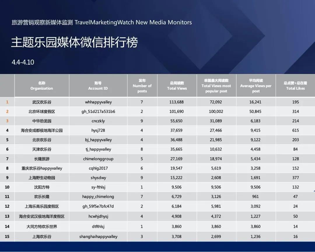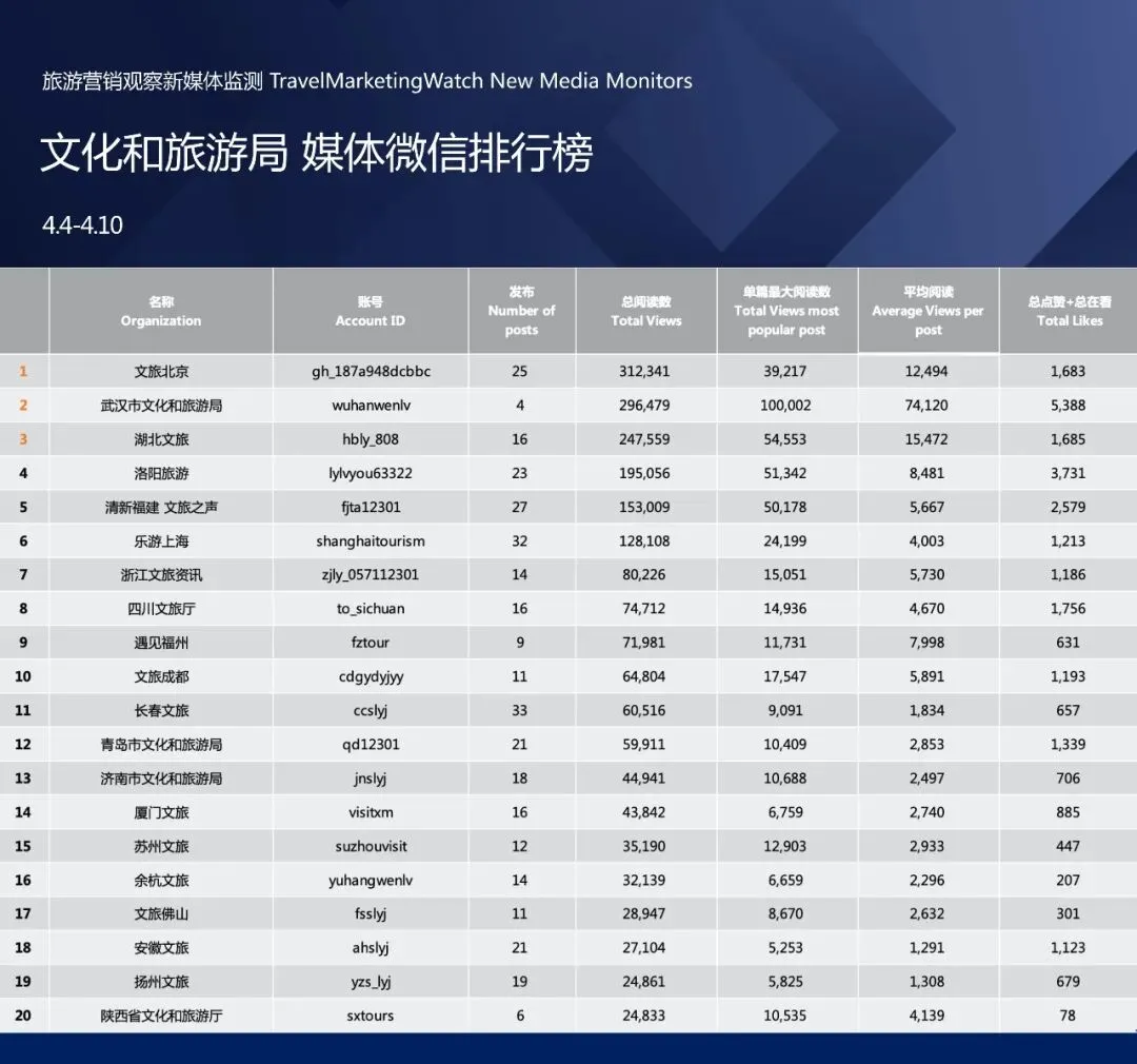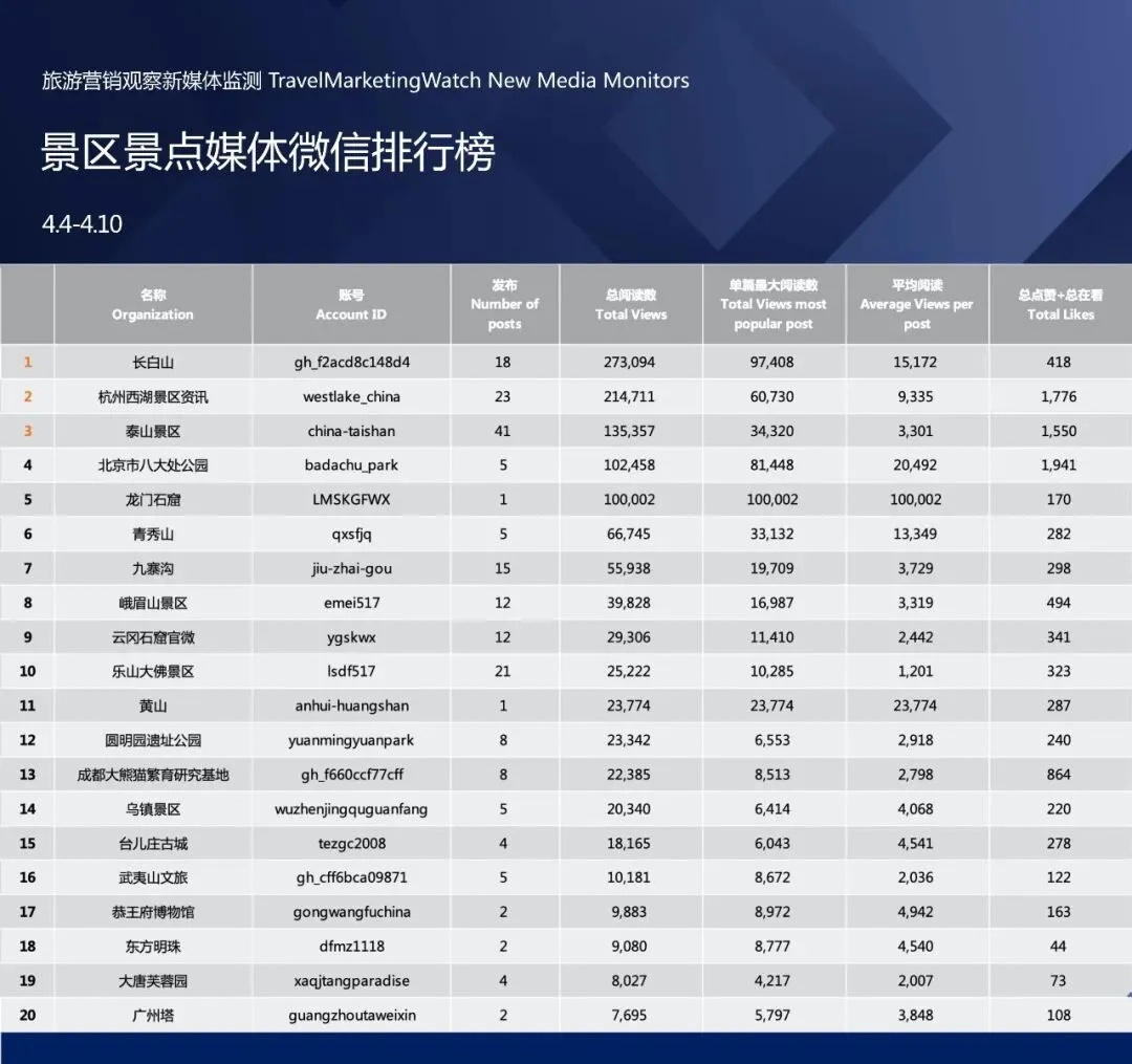 榜單 | 國內旅游品牌【微信】影響力排行榜(4.4-4.10)