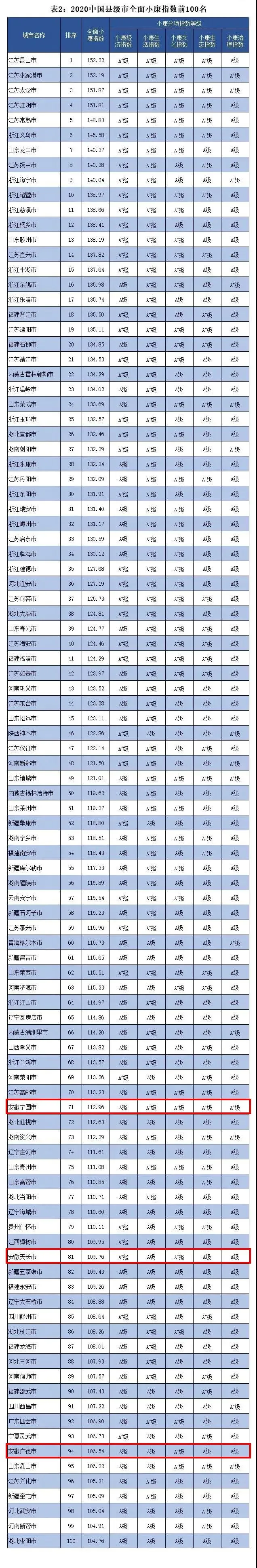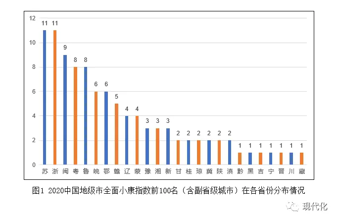 中國縣級市全面小康指數前100名中東部地區59個、中部地區21個、西部地區16個、東北地區4個。