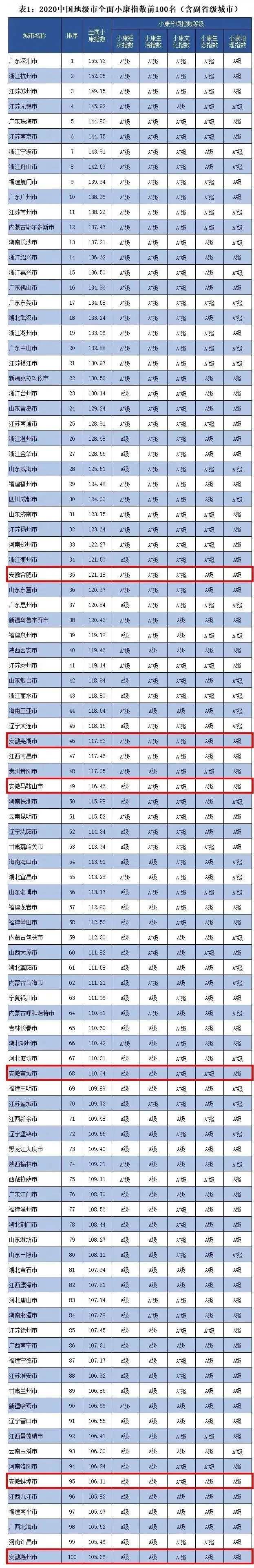 2020中國地級市全面小康指數前100名中,有6個“新成員”,分別為新疆哈密市、遼寧營口市、江西九江市、福建南平市、河南許昌市、安徽滁州市。