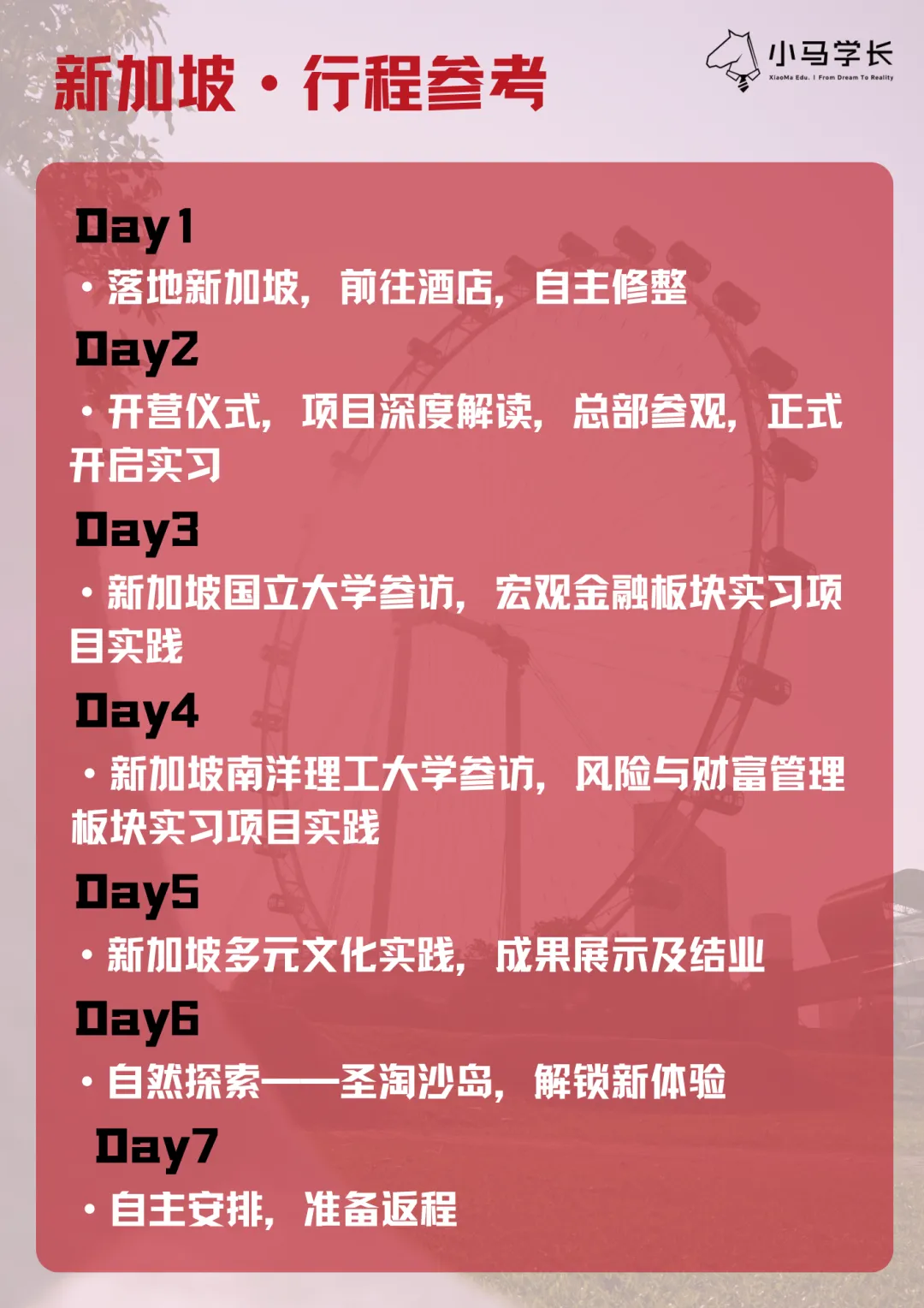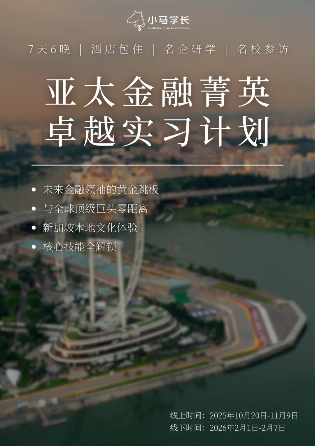 從亞太金融市場(chǎng)趨勢(shì)研判、結(jié)構(gòu)性金融產(chǎn)品設(shè)計(jì),到百億級(jí)風(fēng)險(xiǎn)投資組合優(yōu)化、家族財(cái)富管理方案定制,打造貫穿資本運(yùn)作全鏈的收益引擎。更會(huì)直通新加坡國(guó)立大學(xué)、南洋理工大學(xué)頂尖學(xué)府沉浸式參訪(fǎng),感受名校殿堂的魅力,成就兼具實(shí)戰(zhàn)鋒芒與戰(zhàn)略視野的下一代金融領(lǐng)袖。