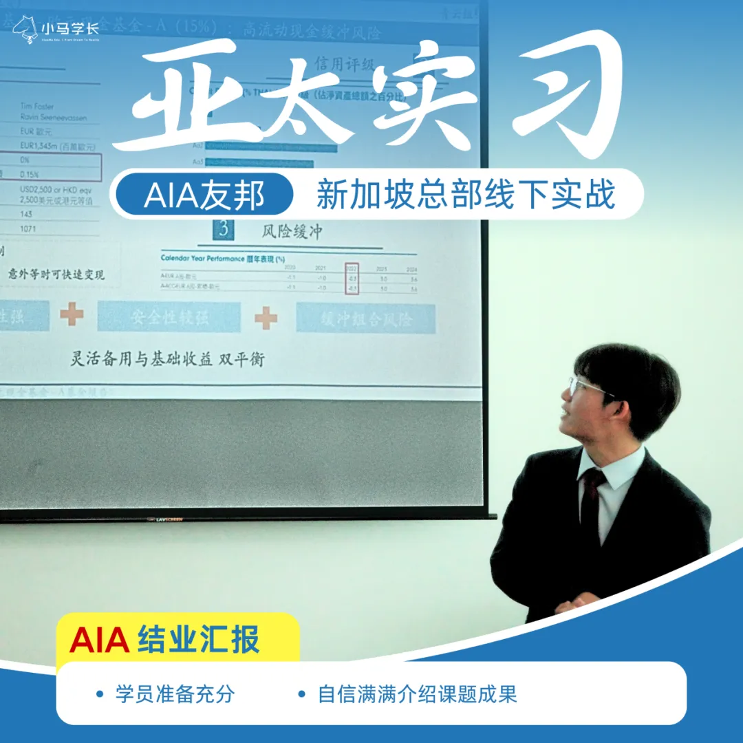 通過(guò)遴選的卓越學(xué)員將直抵AIA新加坡友邦亞太戰(zhàn)略核心地總部,在集團(tuán)高管與部門(mén)總監(jiān)級(jí)導(dǎo)師的專(zhuān)屬指導(dǎo)下,深度參與全球保險(xiǎn)科技革新與高凈值資產(chǎn)管理的實(shí)習(xí)項(xiàng)目。